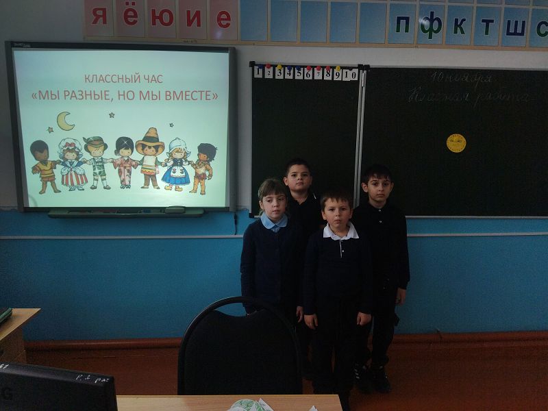 Сегодня для учеников 1 класса МБОУ Суховской СОШ был проведен классный час на тему: «Все мы разные, но мы вместе!». Ребята узнали о том, что наш класс это маленькая семья. И всем хотелось бы, чтобы наша семья была дружной, чтобы в семье царил покой и взаимопонимание.
