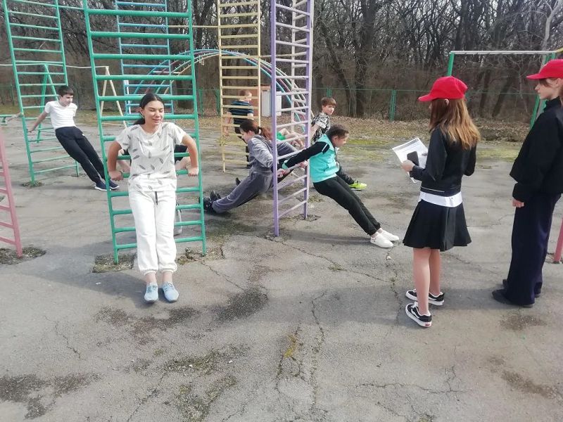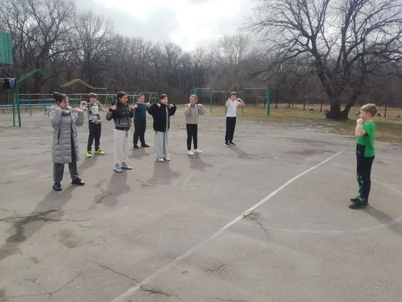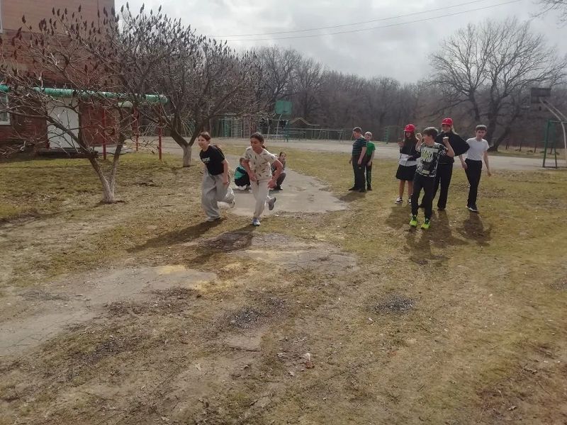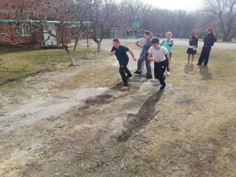 Занятие проходило в самой лучшей обстановке – на свежем воздухе, на школьной спортивной площадке! Никакие стены не могли сравниться с простором и бодрящим весенним воздухом.