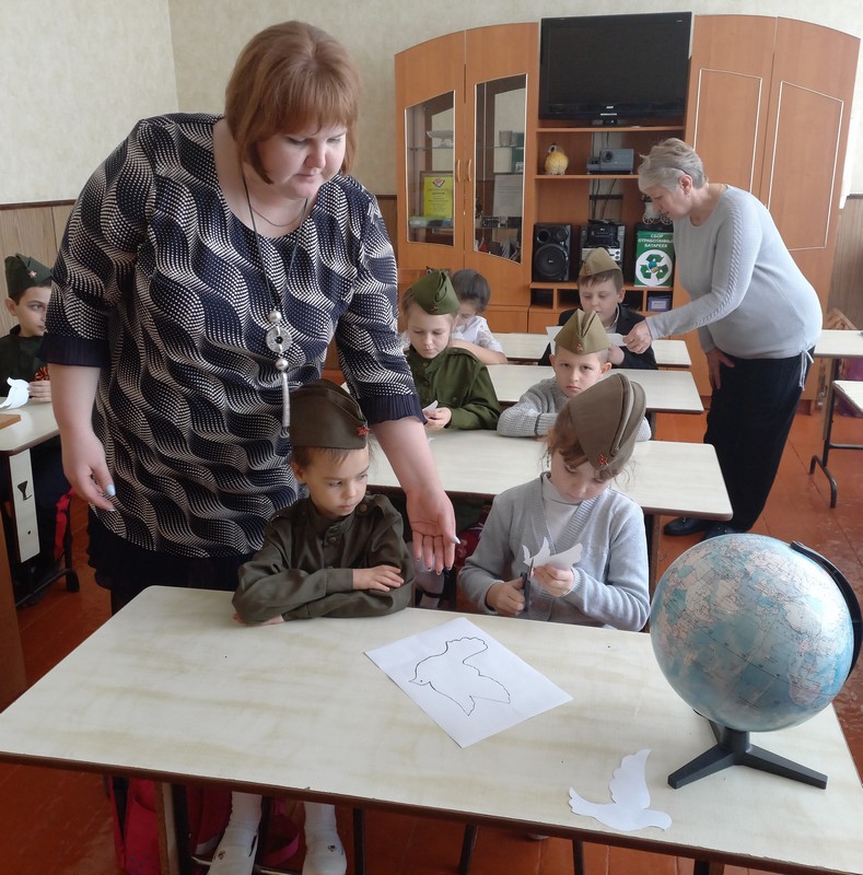 В конце мероприятия Иванюк И.Ю., кл. руководитель 1 кл., и все участники классного часа изготовили голубей и отправили их в полет по всей Земле, чтоб разнесли они мир всему миру.
