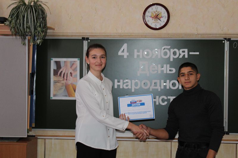 3 ноября, в преддверии всенародного праздника в школе была проведена интеллектуальная игра «РосКвиз», посвященная Дню народного единства, среди учащихся 9–10 классов.