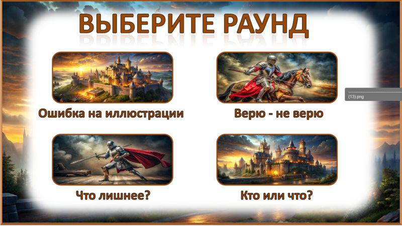 - "Кто или что?" — викторина, проверявшая знания о главных персонажах и символах Средневековья.