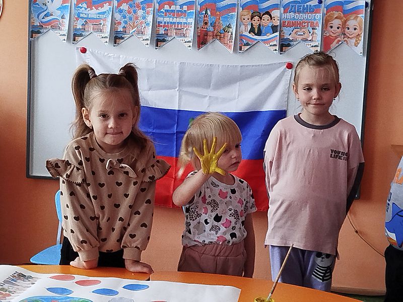 4 ноября наша страна отмечает День Народного Единства. Этот день занимает особое место среди государственных праздников России. В преддверии праздника в разновозрастной группе была проведена беседа на тему "Откуда берёт начало праздник - День Народного Единства" с показом презентации, в ходе которой дети в доступной форме познакомились с историей возникновения праздника. Узнали о том, как происходило сплочение народа в труднейшие для страны времена, закрепили знания о государственных символах.