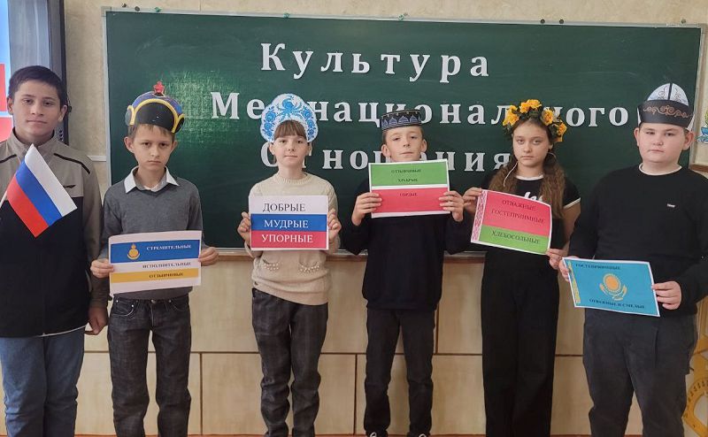 Ребята-пятиклассники приняли участие за круглым столом на тему: «Культура межнационального общения», где они выступили в роли представителей разных национальностей. Учащиеся познакомились с историей формирования национального состава населения России, изучили межнациональную культуру и научились основам толерантного общения.