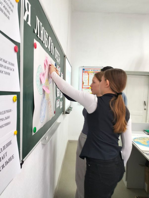 В ходе тренинга школьники учились распознавать и выражать собственные эмоции, понимая их влияние на качество жизни при выполнении упражнений: