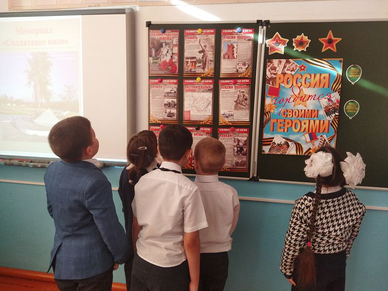 Ребята с интересом слушали рассказ о величайшем сражении, о том, как началась Сталинградская битва, о том, что длилась она 200 дней и ночей. В ходе мероприятия ребята узнали о событиях того времени, о героизме советских воинов, о значении победы под Сталинградом. В завершении учащиеся познакомились с обзорной выставкой «Сталинградская битва».