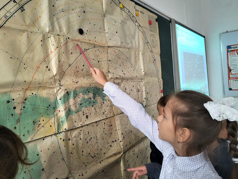С целью формирования представлений о карте звёздного неба; развития умения давать характеристику звёздам; знакомства с созвездиями Кассиопея, Орион, Лебедь во 2 классе 26 сентября прошло внеклассное мероприятие «Прогулка по звездному небу».