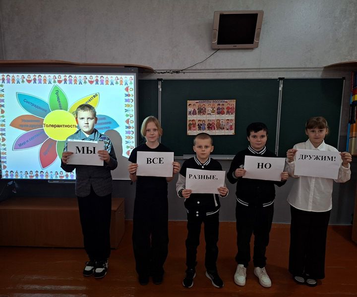 С целью уважительного отношения к культуре и религиям народов, проживающих на территории Российской федерации для учащихся 4 класса (кл. руководитель-Иванюк И.Ю.) прошел классный час "Мы разные, но все дружим!".