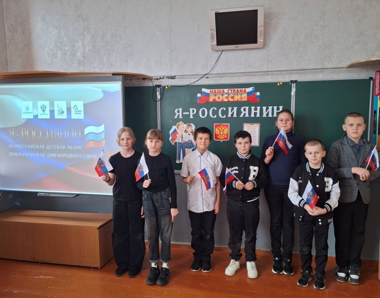 Учащиеся 4 класса (кл. руководитель Иванюк И.Ю.) приняли участие во Всероссийской акции «Я – Россиянин», приуроченной ко Дню народного единства. Ребята вспомнили об истории праздника, поговорили о значении сплочённости и дружбы народов России, обсудили, как важно сохранять единство нашей многонациональной страны.