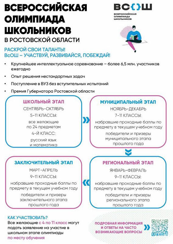 Муниципальный этап предусмотрен для учащихся 7-11 классов, а в региональном и заключительном могут участвовать школьники 9-11 классов.