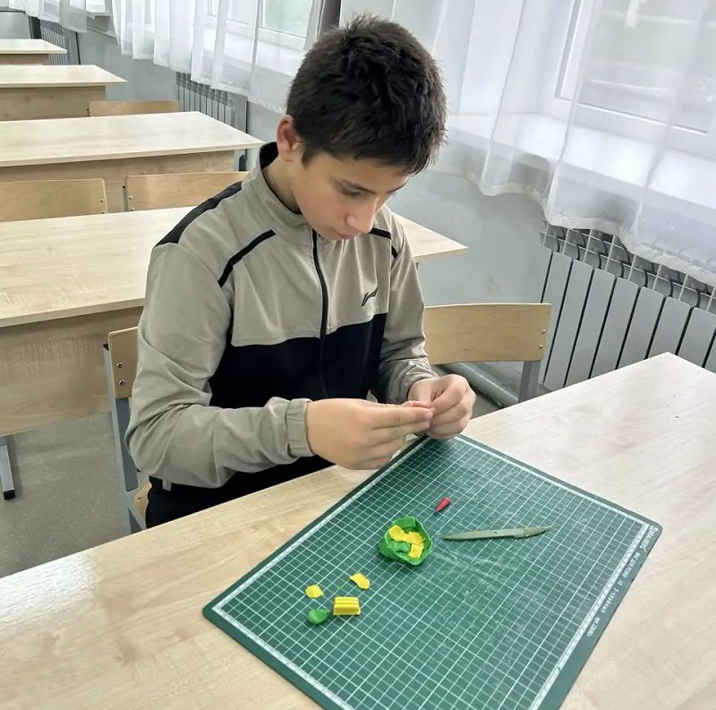 Тема очередного факультативного занятия по биологии для учащихся 5 класса -«Творческая мастерская «Создание модели растительной клетки из пластилина». Ребята с энтузиазмом подошли к изучению данной темы и слепили из пластилина модели растительной клетки. Но, так как они уже изучили и строение бактериальной клетки, то решили сделать модель клетки бактерии.